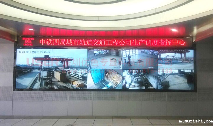 项目介绍:采用46寸2x5组合,物理拼缝6.7mm,铝合金支架安装。