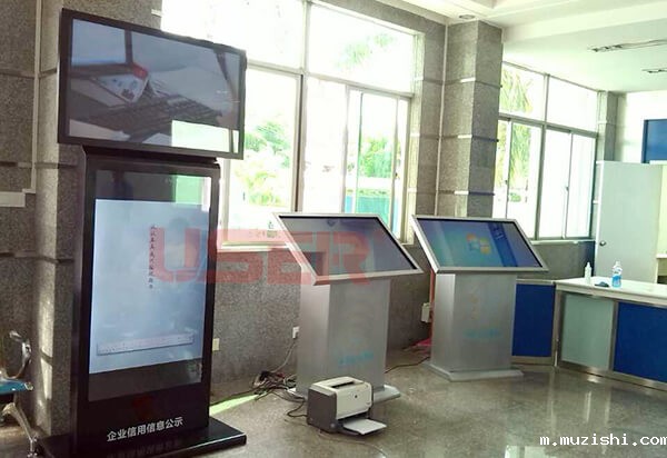 →海南省东方市工商局落地广告机_双屏广告机_斜面触摸一体机案例展示