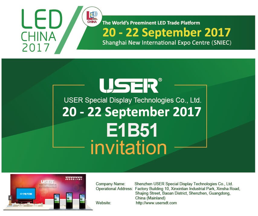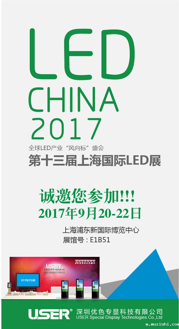 金秋九月,硕果累累,顺应市场行情和公司发展需要,公司将参加于2017年9月20-22日在上海浦东新国际中心举办的第十三届上海国际LED展,公司展位E1B51,届时诚邀莅临参观!