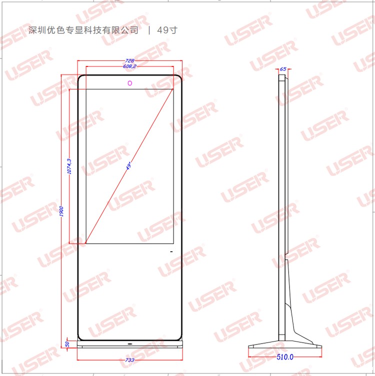 华体汇体育官网入口专显US-AD430PLS/US-AD460PLS/US-AD490PLS/US-AD550PLS/US-AD650PLS/US-AD860PLS仿苹果款落地立式液晶广告机产品图片,参数,尺寸。