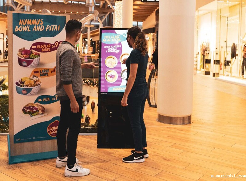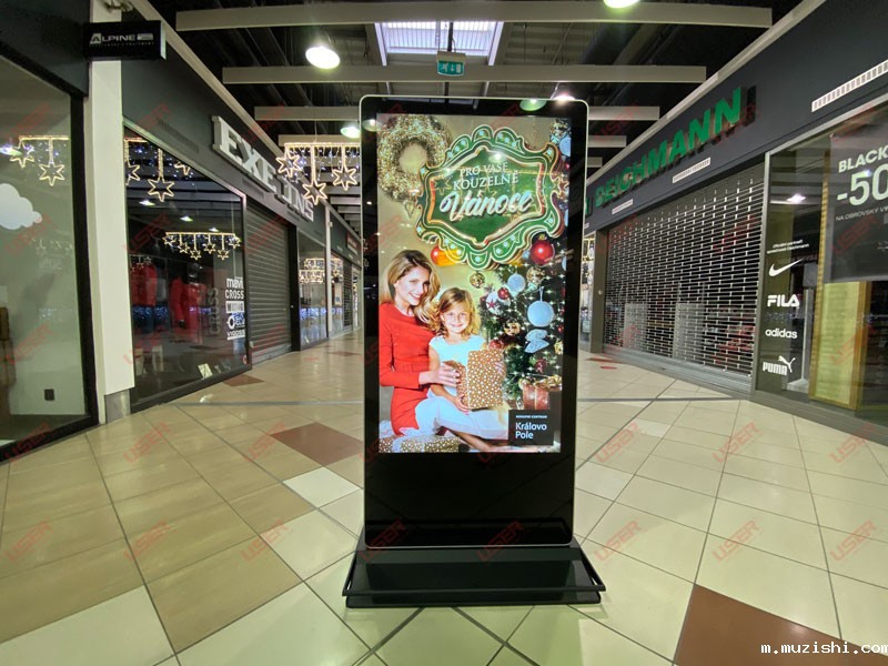 →华体汇体育官网入口专显65寸双面纳米触摸落地广告机进驻捷克某商场