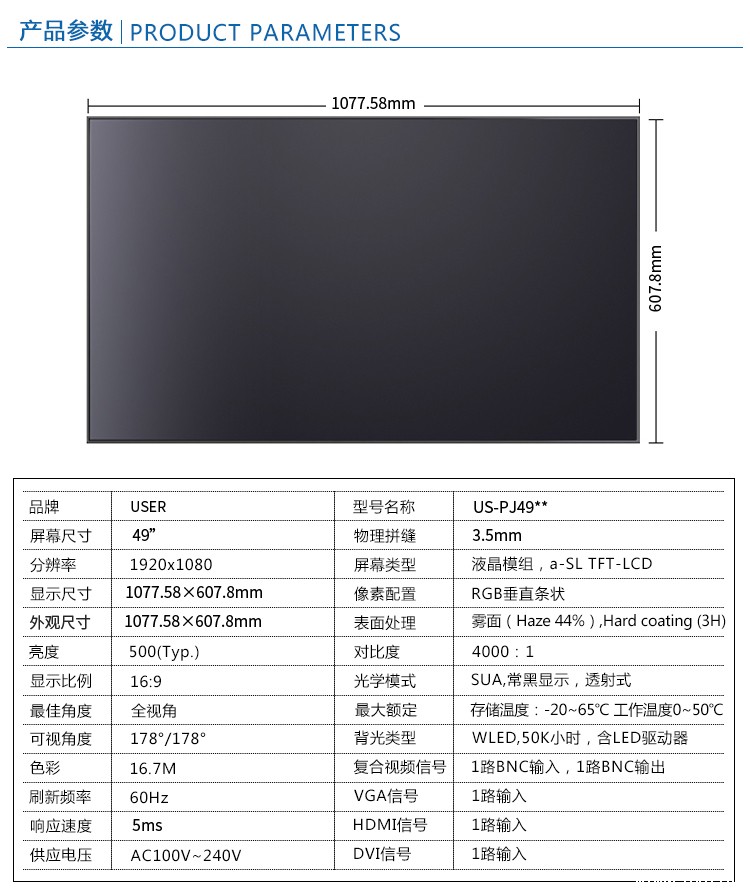 菜单产品中心Product center 液晶广告机 壁挂式广告机 落地立式广告机 电梯超薄广告机 车载广告机 高亮广告机 户外广告机 app下载华体会 专业液晶拼接屏 4K液晶拼接屏 广告拼接屏 无缝液晶拼接屏 触摸液晶拼接屏 hth358华体会 app华体会在线登录 壁挂式触控一体机 立式触控一体机 斜面触控一体机 智能家居触控一体机 户外触控一体机 app华体会网址 教育电子白板 会议电子白板 工控一体机 AG真人官方华体会 红外触摸显示器 电容触摸显示器 电阻触摸显示器 声波触摸显示器 纳米触摸显示器 液晶监视器 专业级监视器 4K监视器 嵌入式监视器 机架式监视器 开放式监视器 SDI监视器 高亮监视器 广播级监视器 AG华体会体育 4K显示器 机架式显示器 开放式显示器 医疗显示器 KVM显示器 指挥室显示器 app华体会app在线下载 专业定制商显 多屏广告机 多功能触控一体机 多功能广告机 微信打印广告机 魔镜广告机 透明广告机 全息广告机 条形屏广告机 旋转广告机 裸眼3D广告机 人工智能产品 显示配套设备 拼接配套设备 广告机播放盒 OPS播放盒 拼接支架 移动支架 相关软件 吊顶支架 线材 木架 蜂窝箱 桌面底座 热门产品 →华体汇体育官网入口3.5mm超窄边46寸液晶拼接屏→华体汇体育官网入口49寸3.5mm超窄边液晶拼接屏→华体汇体育官网入口3.5mm超窄边55寸液晶拼接屏 您的位置:首页 → 华体会hth中国体育 → app下载华体会 → 专业液晶拼接屏 华体汇体育官网入口49寸3.5mm超窄边液晶拼接屏类别:专业液晶拼接屏 简介:◆ 型号:US-PJ49** ◆类型:三星/LG/京东方BOE面板 ◆亮度:500-700cd/m2(可选) ◆超窄边设计,拼缝3.5mm ◆ 在ISO9001严格的质量控制体系下生产 ◆ 色彩均匀,图像稳定,为拼接大画面定制... 在线咨询 返回列表 产品说明 相关产品 华体汇体育官网入口1.7mm超窄边55寸液晶拼接屏 华体汇体育官网入口49寸1.8mm超窄边液晶拼接墙 华体汇体育官网入口49寸3.5mm超窄边液晶拼接屏 华体汇体育官网入口3.5mm超窄边55寸液晶拼接屏 华体汇体育官网入口3.5mm超窄边46寸液晶拼接屏 华体汇体育官网入口5.3mm超窄边55寸液晶拼接屏